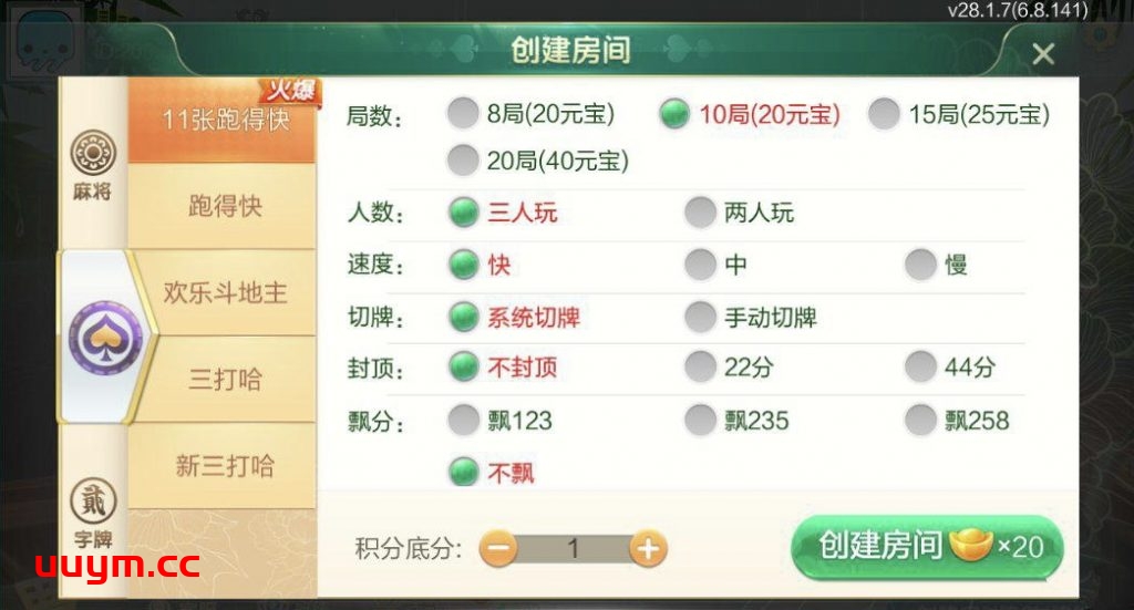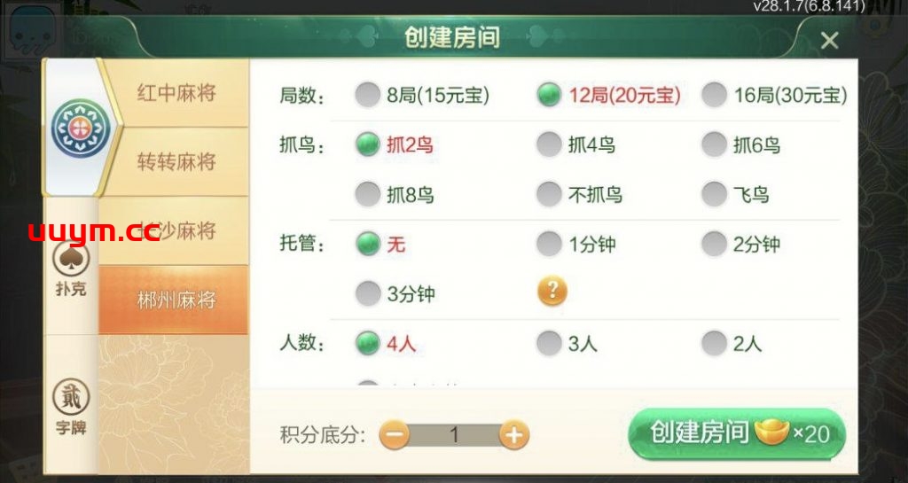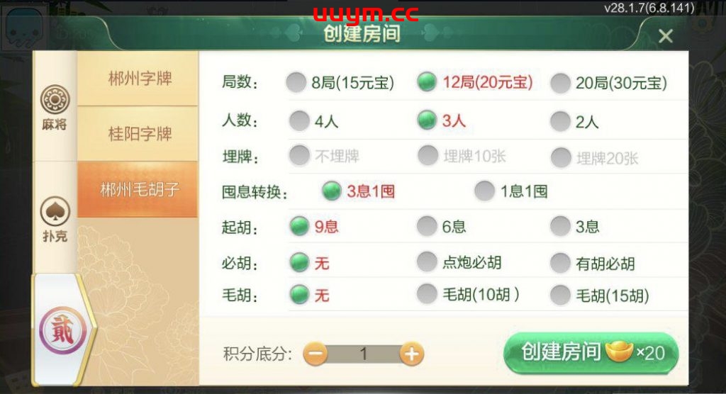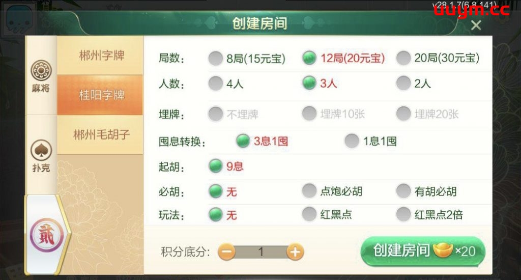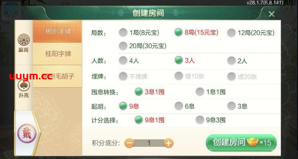 麻将:郴州麻将,红中麻将,长沙麻将,转转麻将, 扑克:11张跑得快,跑得快,斗地主,三打哈,新三打哈, 字牌:郴州字牌,郴州毛胡子,桂阳字牌。