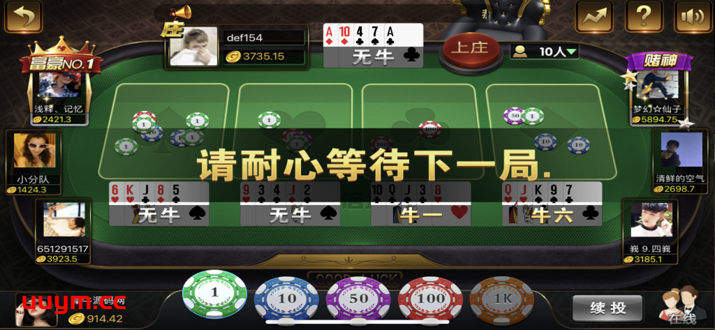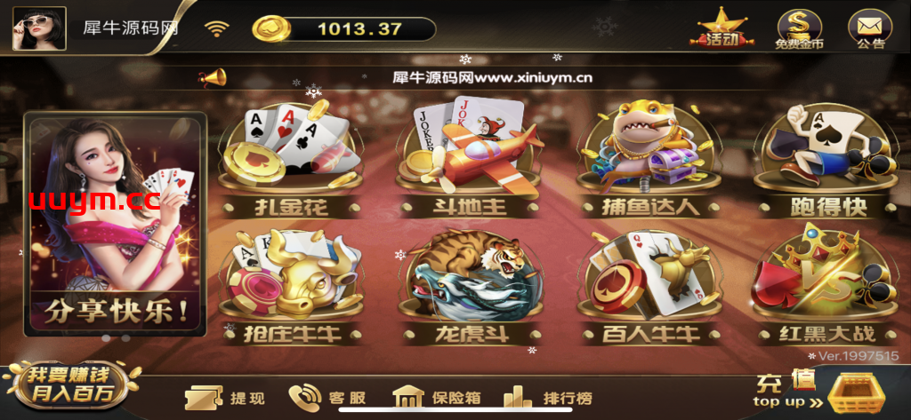 游戏全部玩分别:炸金花 抢庄牛牛 斗地主 龙虎斗 捕鱼达人 百人牛牛 跑得快 红黑大战 飞禽走兽 百家乐 奔驰宝马 骰宝 水果机 轮盘 百人推筒子 红包扫雷 财神到 水浒传 绝地求生