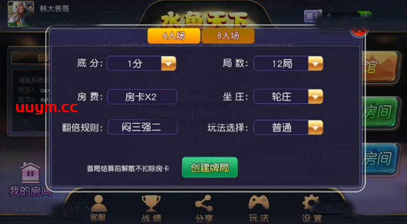【轮庄模式】每局按照顺序选择一名玩家为庄家,其他为闲家!