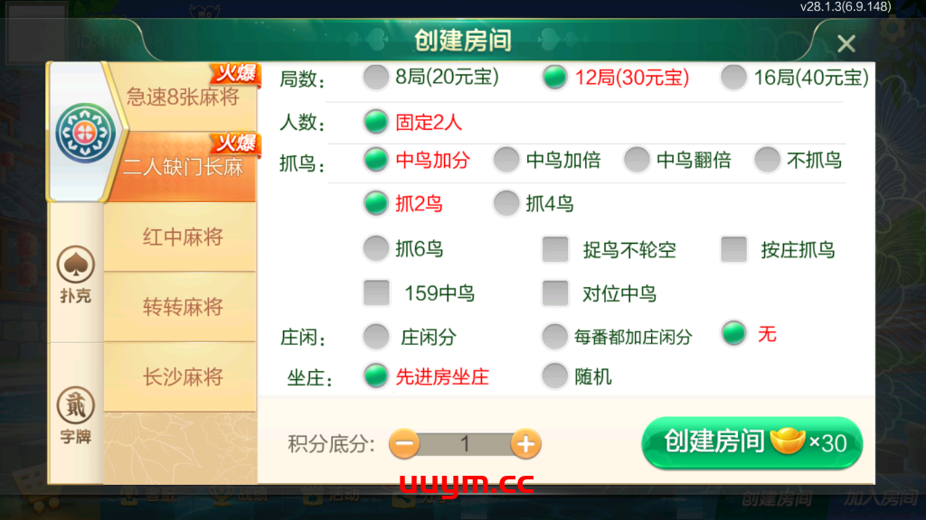 麻将:急速8张麻将,二人缺门长麻,长沙麻将,转转麻将,红中麻将