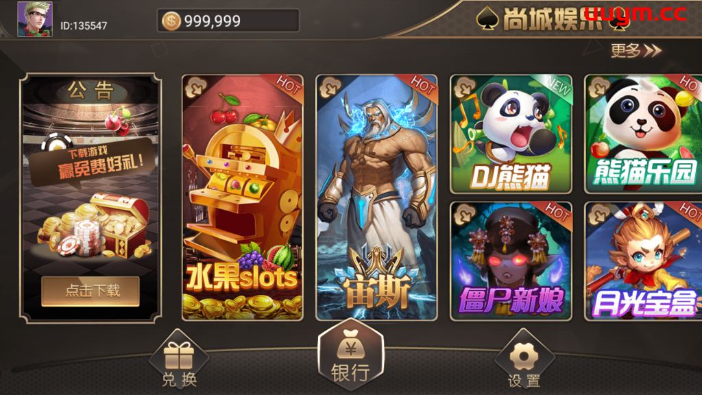 游戏:水果slots、宙斯、DJ熊猫、熊猫乐园、僵尸新娘、月光宝盒、铜雀台、拳皇97、冰球突破、李逵劈鱼、水浒传、金字塔、888、百人牛牛、埋雷、炸金花、抢庄牛牛