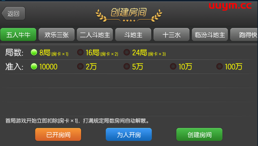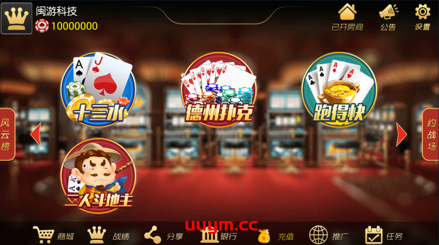 傲玩梦想版采用全新游戏算法,这是原来的傲玩至尊升级版本,功能更齐全,界面更美观大方,支持金币和房卡双模式,分别有几十款全新最热门的游戏:二人斗地主、斗地主、十三水、炸金花、临汾斗地主、五人牛牛、捕鱼、百变牛牛、百人二八杠、德州扑克、跑得快、转转麻将、乐在转转麻将、广东麻将、红中麻将、划水麻将、贵阳捉鸡、天津麻将、四川麻将、疯狂水果、5PK、水果铃铛、连环夺宝、飞禽走兽等