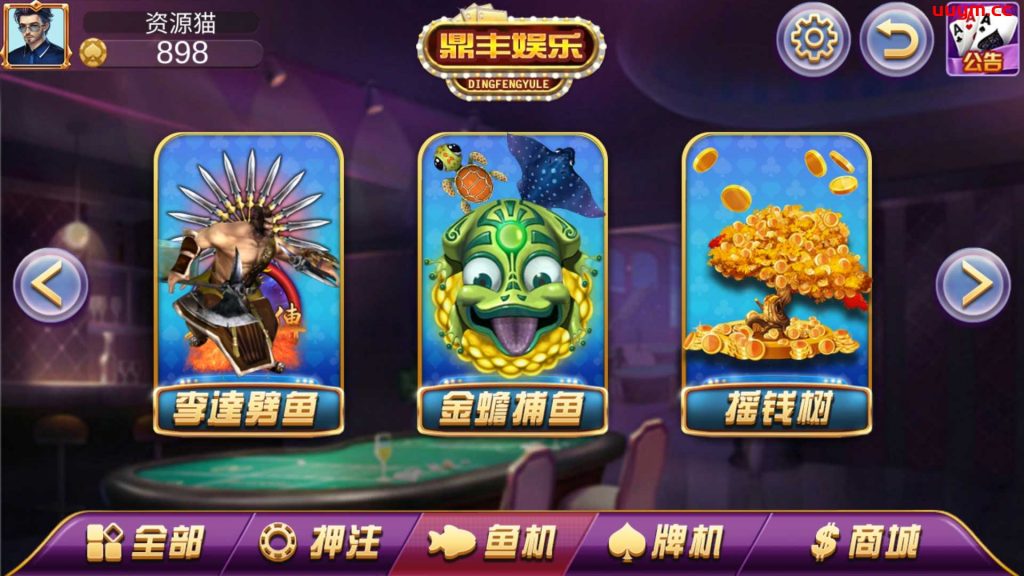 捕鱼:史前巨鳄、李逵劈鱼、金蝉捕鱼、摇钱树;