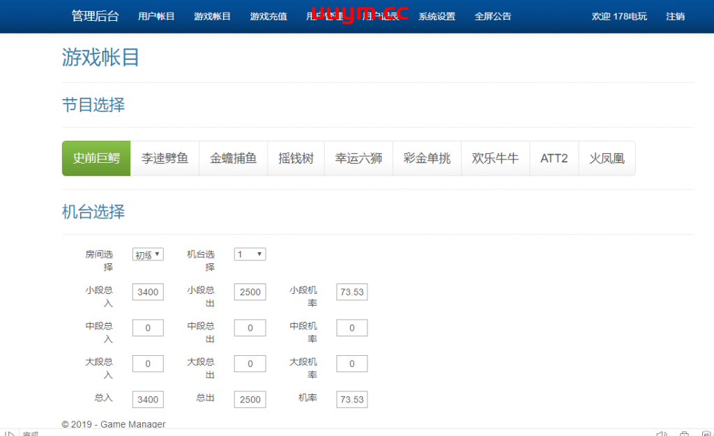 运营街机捕鱼游戏娱乐方面*,后台功能*,控制端强大,UI设计简洁,178*玩城分为三种类型游戏,其中有*玩、捕鱼、纸牌。演示在下方,严正声明:本程序仅提供研究便用,非法*导致法律冲突请自行负责!本站概不负责!游戏简介:*玩:幸运六狮、彩金单挑;捕鱼:史前巨鳄、李逵劈鱼、金蝉捕鱼、摇钱树;纸牌:欢乐牛牛、翻牌机(ATT2连环炮)、火凤凰;
