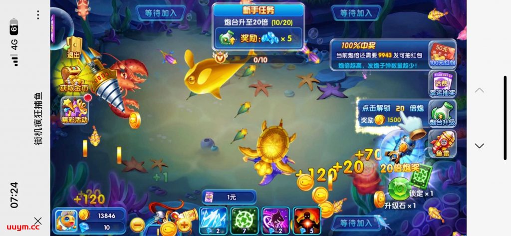 画面精美、动画效果绚丽、含有完整的任务系统、多种类活动系统(如每日活动、激励活动、节日活动等)、等级体系、广告体系、完善的磕金系统(如基金、周卡、月卡、年卡、炮台、翅膀等、激励氪金任务、打榜等)玩法不只有捕鱼还有很多有趣的玩法如寻宝啊、打塔等等吧这里就不多介绍了。客户端使用Creator跨平台开发可以编译多种客户端如:H5网页版、android/iosAPP、pc版等客户端。
