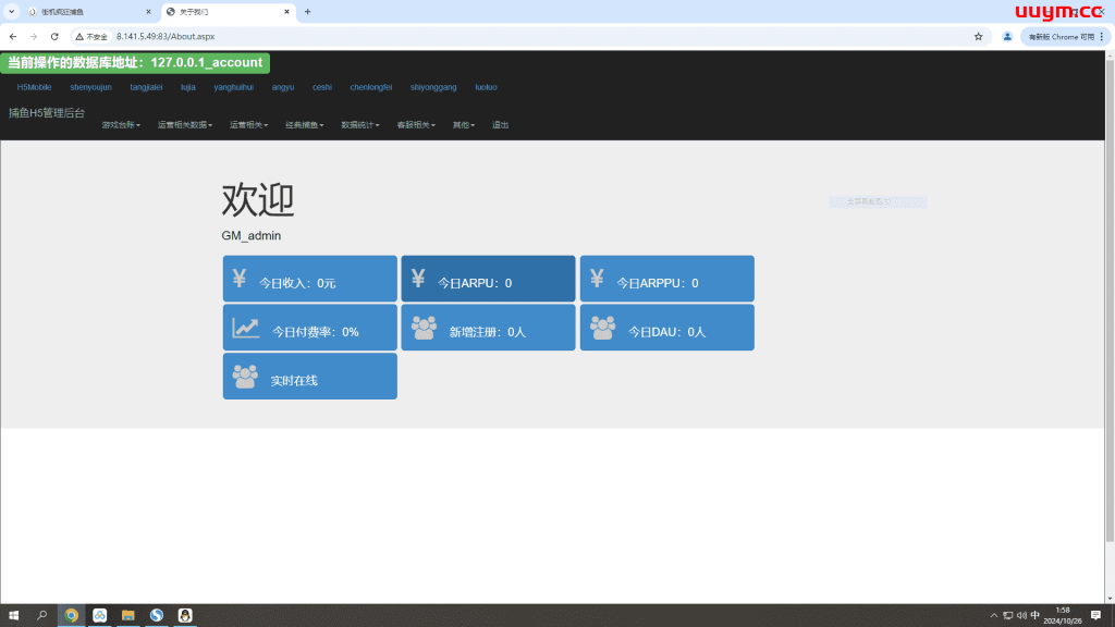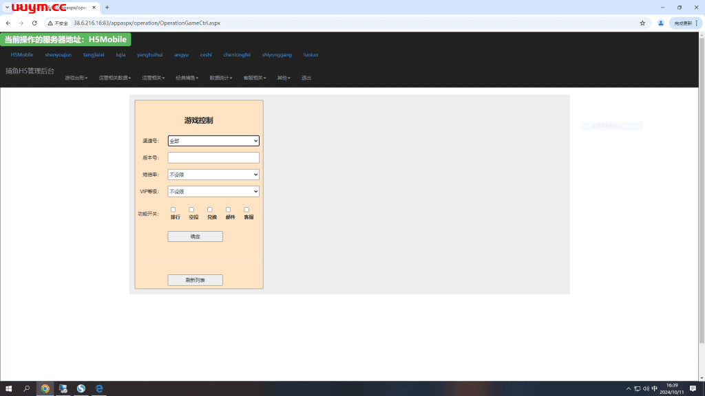 总管理后台可以针对每个渠道进行管理,网站源码中kufu是给渠道商的管理系统,控制系统分为全局参数控制、及账号点杀点送。其他的功能看上面的管理后台运行截图吧。