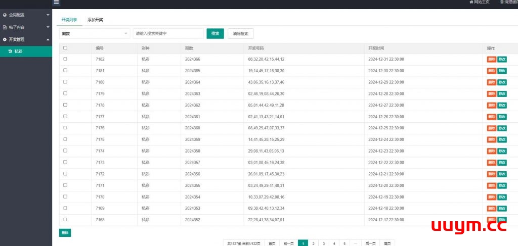 带一个私彩,后台可以预设开奖号码,而且私彩的开奖期数好像都是自动生成