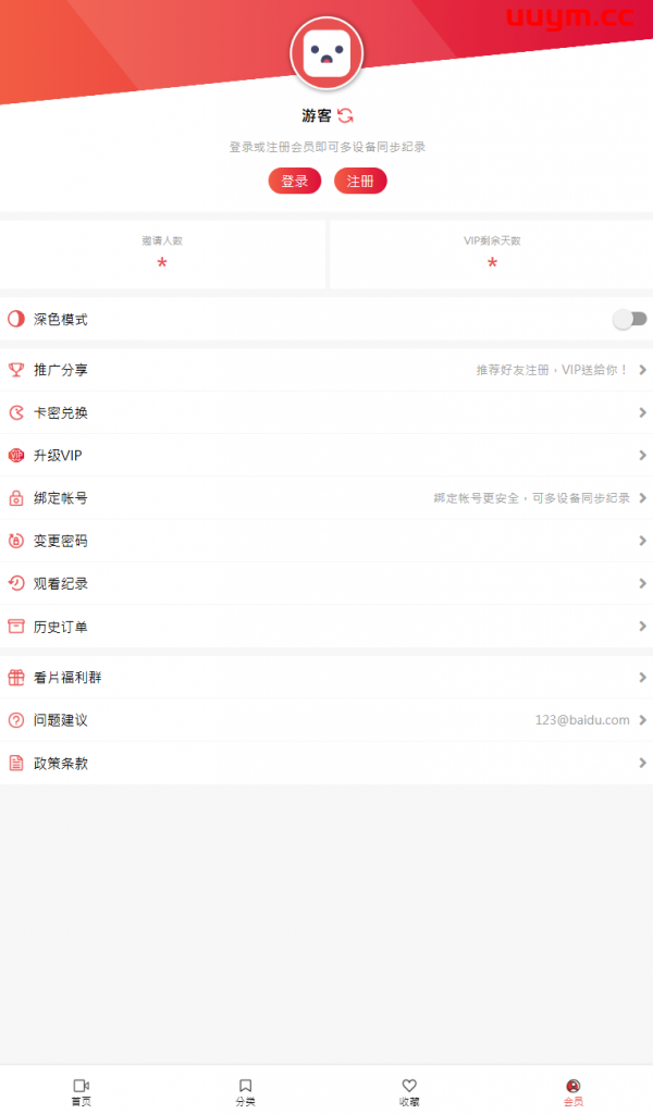 - 注册自动送VIP,可自行设置赠送多少天或无赠送