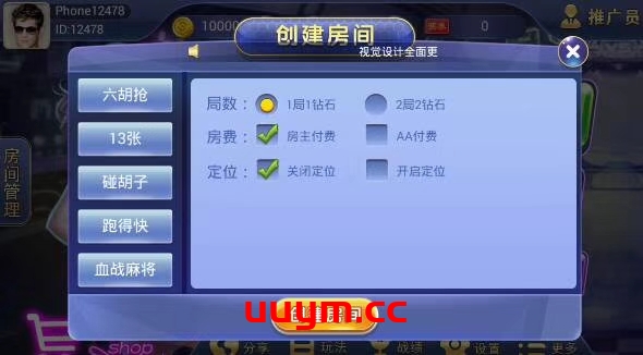 房卡场: 斗地主 跑胡子 红中麻将 六胡抢 十三张 碰胡子 跑得快 血战麻将