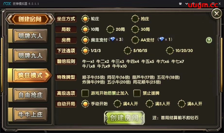 市面优秀玩法 六人 九人明牌,疯狂模式,满人开房,搓牌,抢庄等