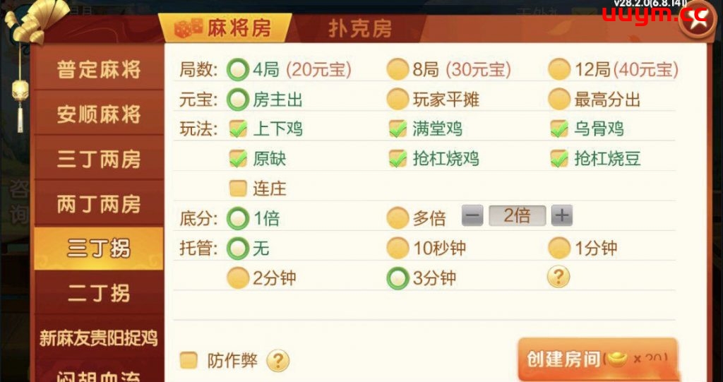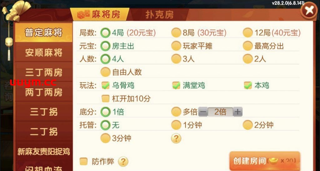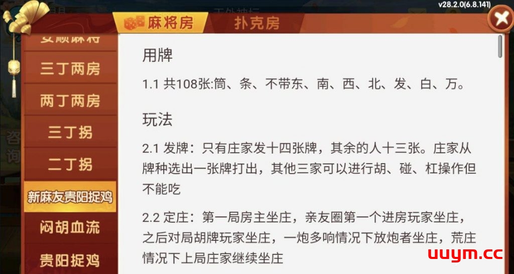 麻将:普定麻将,安顺麻将,三丁两房,两丁两房,三丁拐,两丁拐,新麻友贵阳捉鸡,闷胡血流,贵阳捉鸡 扑克:跑得快,斗地主 资源下载此资源下载价格为50u(VIP 5折、终身VIP免费),请先登录 声明:本站所有文章,如无特殊说明或标注,均为本站原创发布。任何个人或组织,在未征得本站同意时,禁止复制、盗用、采集、发布本站内容到任何网站、书籍等各类媒体平台。如若本站内容侵犯了原著者的合法权益,可联系我们进行处理。