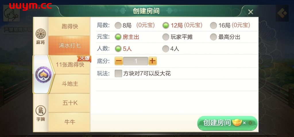 游戏9个:广东麻将,浠水麻将,跑得快,浠水打七,11张跑得快,斗地主,牛牛,510K,金花。 资源下载此资源下载价格为50u(VIP 8折、终身VIP免费),请先登录 声明:本站所有文章,如无特殊说明或标注,均为本站原创发布。任何个人或组织,在未征得本站同意时,禁止复制、盗用、采集、发布本站内容到任何网站、书籍等各类媒体平台。如若本站内容侵犯了原著者的合法权益,可联系我们进行处理。